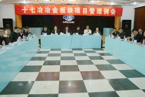 329下午,十七冶召开2010年一季度冶金板块工程项目管理例会,公司董事长、党委书记康承业,副总经理喻世功,总工程师尹万云,总经理助理王青山、钟华彪与公司各职能部门、冶金板块各项目负责人、机电公司领导参加了会议。会议由机电公司党委书记周美初主持。