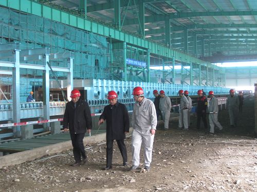 330下午,公司董事长、党委书记康承业,在公司副总经理喻世功、机电公司经理唐克斌的陪同下,来到十七冶酒钢工程现场检查指导工作,并与项目部管理人员进行了座谈交流。