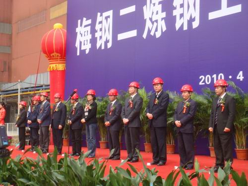 42上午10点,梅钢二期炼钢工程举行了简短而隆重的开工仪式,十七冶总经理王建国、副总经理喻世功应邀参加,并由喻世功副总经理代表公司现场致辞。
