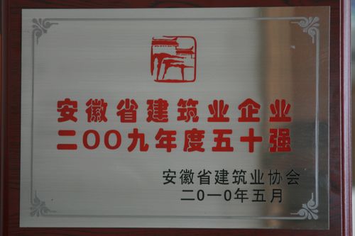 公司获“安徽省2009年度建筑业50强”称号