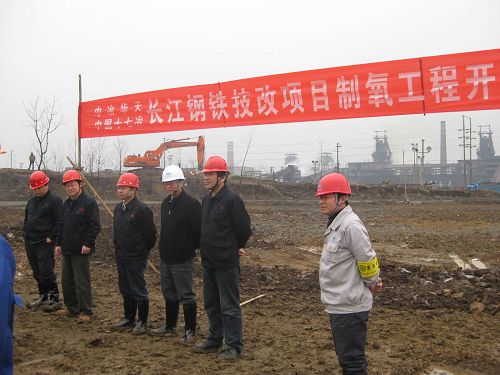 十七冶在该工程中主要承担土建施工任务。长江钢铁技改项目部年前就把计划安排,人员组织,材料机具进场等各类生产要素一一组织落实到位,从而确保了制氧工程的按期开工。