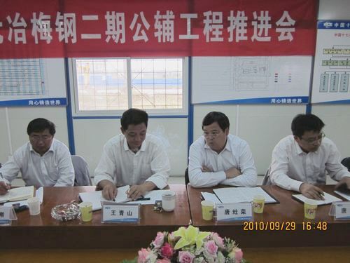 929下午,十七冶梅钢二期公辅工程召开首次项目推进会。十七冶集团公司副总经理唐灶荣、总经理助理王青山,冶金工程技术公司经理唐克斌,集团公司项目监管部、安全环保部、经营计划部、技术中心等部门负责人及参战单位负责人参加了会议。