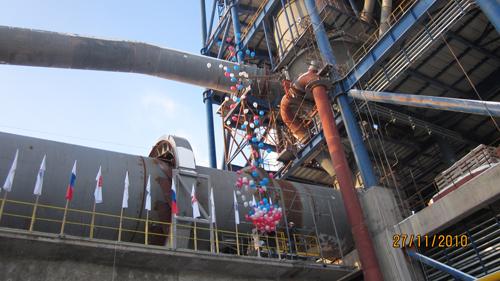冶金工程技术公司俄罗斯项目部于10月25日按照业主计划要求通过火车卸料、运输及堆料机等顺利将7000t铁粉原料堆放于石灰石铁粉储库,赢得了业主的好评。目前,矿山区域11个子项主体及授电结束,并达到试车条件;烧成区域9个子项,其中大窑于11月21日试车并筑炉,电气已授电;生料磨润滑系统管道正在按计划施工。水泥生产区域8个子项,2台水泥磨主机已经完成。