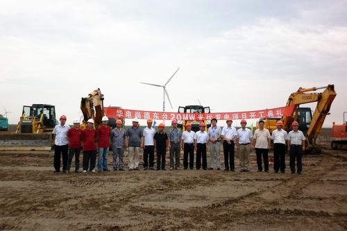 726上午1028分,由风力与太阳能发电工程技术公司承建的华电尚德东台20MW光伏发电项目正式开工。江苏东台沿海经济区党工委副书记、管委会副主任丁克祥,华电尚德东台太阳能发电工程有限公司和浙江华东工程咨询有限公司相关领导,风力与太阳能发电工程技术公司经理高胜勇、副经理黄大清、项目经理刘斌等参加了开工典礼。