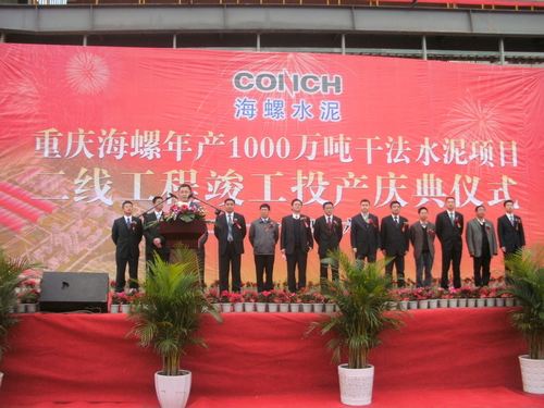 46上午1018分,由水泥工程技术公司参与承建的重庆海螺年产1000万吨干法水泥项目第二条4500t/d水泥熟料生产线点火投产。忠县县委书记朱晞颜、县长刘贵忠、县人大主任蒲云登,海螺川渝区域主任、重庆海螺总经理李晓波,海螺集团装备部副部长张强等领导及十七冶等施工单位代表出席了竣工投产仪式。