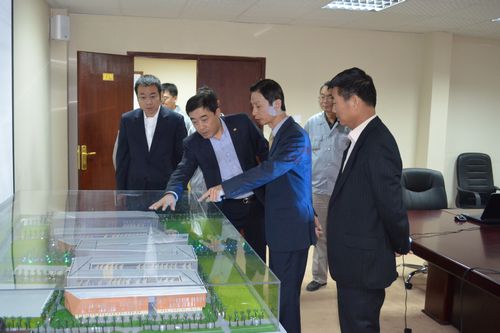 在中国十七冶集团副总经理、海外事业本部经理、MCC-KAK COEP项目联合体中方代表蔡进的陪同下,黄杰民大使、胡要武参赞饶有兴致的观看了COEP项目建筑模型,还亲临施工现场实地考察,全面了解了COEP项目男女校区设计理念,施工进度等相关情况,并在项目经理部会议室进行座谈