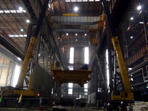 马钢四钢轧钢水接受跨500吨行车主小车吊装圆满成功