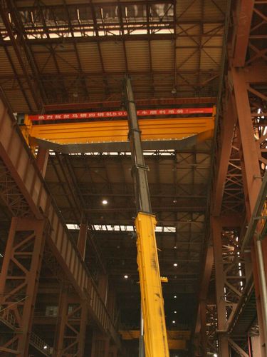 820上午,由冶金工程技术公司承建的马钢四钢轧加料跨门前,礼花齐放,鞭炮齐鸣,目前我国冶金行业最大的桥式起重机——炼钢加料跨500t行车重达74tB梁顺利吊装到位。