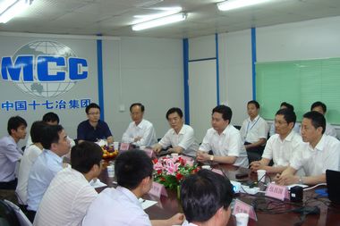 61下午,中冶集团计划财务部部长陈文龙等一行7人在中国十七冶集团总会计师章宏金、计划财务部长吴金玉、城建工程技术公司经理伍昌国等陪同下,到芜湖星隆国际城项目调研成本控制管理工作。