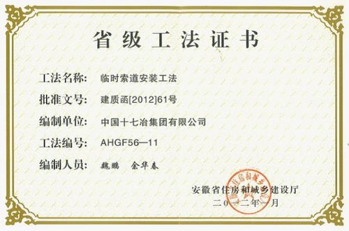 3月1日,在合肥市召开的安徽省建筑业暨建筑节能工作会议上获悉,中国十七冶集团申报的五项工法被安徽省住房和城乡建设厅评为2011年度省级工法。 这五项工法分别是《临时索道安装工法》、《非开挖水平定向钻进管线铺设施工工法》、《真空联合堆载预压施工工法》、《环型双膛竖式石灰窑施工工法》和《DOKA大模板提升式施工工法》。