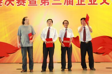 公司领导王建国、彭毅忠、唐灶荣、尹万云分别为大合唱、书画作品展、乒乓球男团和最佳歌手颁奖。