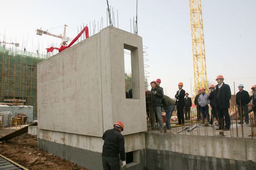 在施工现场,随着尹万云总工程师一声“起吊”令下,首片墙板缓缓升空、移动,准确降落在预定位置,随即在现场技术人员的指导下,安装工人准确就位、调直、固定。接着便是第二块、第三块……该工程不仅是中国十七冶集团首栋住宅产业化示范楼,也是马鞍山市住宅产业化试点项目。示范楼项目的实施,标志着中国十七冶集团绿色住宅产业化转入实施应用阶段。中国十七冶集团将以示范楼建设为契机,加速构建“三园一院一中心”绿色住宅产业化体系,用绿色施工的方式,推进绿色建筑产业的发展,覆盖从研发、设计、生产制造、装配施工、到检试验全流程产业链体系和人才培训中心。将马鞍山引入一个建筑品质更高、寿命更长、节能环保性能更突出的建筑工业化全新时代。