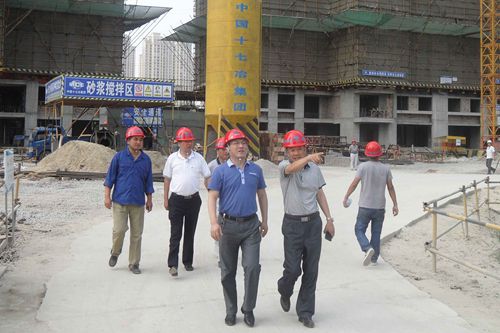 78下午,中国十七冶集团副总经理曹永忠到十七冶房屋工程技术公司承建的亳州国购项目检查指导工作,房屋工程技术公司党委书记胡文奎参加了检查。