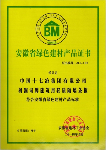 近日,由中国十七冶集团研发生产的具有自主知识产权和核心技术的绿色自保温轻质墙板,分别获得了安徽省墙体材料革新和建筑材料节能办公室和安徽省建材工业协会颁发的新型墙体材料产品证书和绿色建材产品证书。