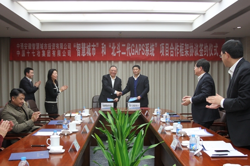 参加签约仪式的还有安徽开普卫星导航通信遥感有限公司董事张学勇,安徽经天纬地建设项目管理有限公司董事长聂广松、总经理郭丽萍,中通安徽智慧城市投资有限公司办公室主任丁小云,中国十七冶集团副总经理王振堂、市场部副部长孙心鞍,中冶置业(安徽)公司副总经理唐翠红等。