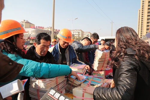 春节将至,农民工返乡在即,中冶置业(安徽)公司联合市工人文化宫和市书法家协会开展这次赠书、赠春联活动,为农民工兄弟提前送上节日的祝福,同时也表达了公司对项目建设者们的关怀与敬意。