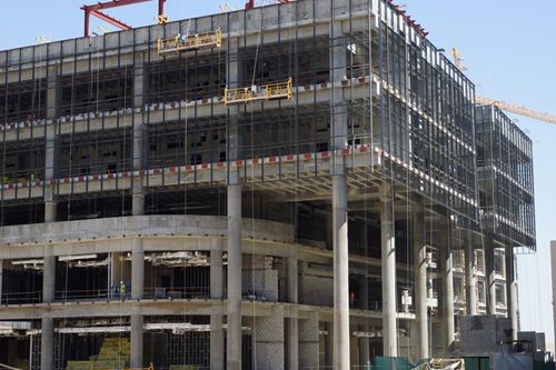5月中下旬以来,科威特日间温度已接近50摄氏度,十七冶中东分公司科威特大学城项目现场却是一派热火朝天的大干景象。目前,科威特大学城项目科学学院玻璃幕墙工程稳步推进,外装工作全面展开。