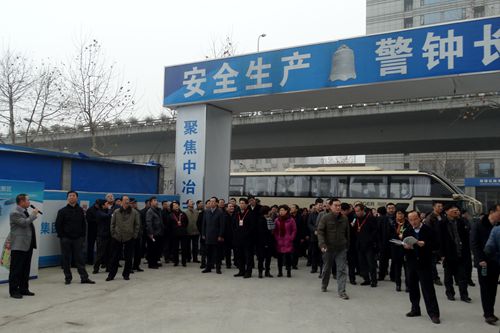 观摩之前,代表们听取了鼓楼滨江开发区领导对该项目工程概况、工期进展的介绍。进入项目部后,长航项目部负责人陪同代表们参观施工现场,并就项目部在克服场地狭小、加强安全质量控制和标化示范工地建设、保证工期措施等方面的工作向代表们做了简要介绍。代表们对十七冶南京长航项目部在企业外化宣传、施工现场文明施工和绿色施工、扬尘控制等方面做出的成绩表示赞许。代表们在得知1#4#楼将于1228日前封顶,实现承诺目标时,更是对十七冶的央企实力给予了高度评价。