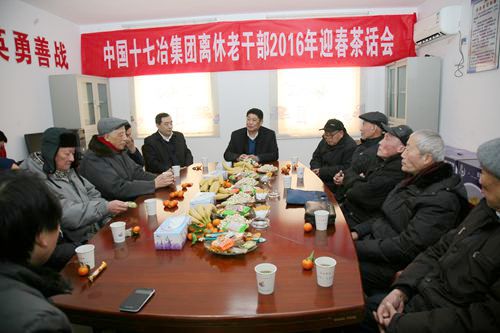 2月4日下午,中国十七冶集团召开离休老干部2016年新春茶话会,公司董事长、党委书记喻世功,纪委书记、副总经理蔡进为他们送上新春的祝福和问候。