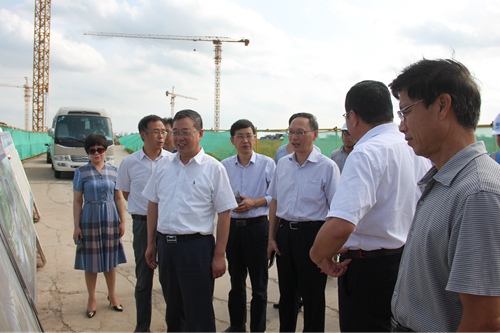 8月12日,滁州市政协副主席王成山一行到十七冶城建分公司承建的滁州市奥体中心项目调研滁州市重点局负责人参加调研。