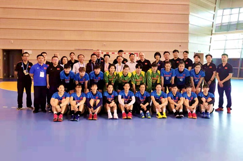 在滁州科创城手球馆,李颖川副局长一行听取了场馆负责人关于场馆建设及运营情况的汇报,并给予高度评价。当天手球馆正在举办第32届夏季东京奥运会女子手球亚洲区资格赛,李颖川副局长一行现场看望了比赛的国家队队员,并为她们加油鼓劲。