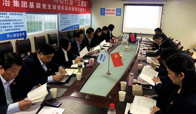 交流学习中,住建分公司纪委委员、永康项目经理吕明山介绍了项目建设情况和廉洁工程示范项目推进情况,并结合自身纪检干部的身份,从“不忘本、常敲钟、抓少数、重教育”四个方面开题,畅谈了新时代纪检监察工作与生产经营深度融合的体会。住建分公司纪委以《党风建设‘廉廉看’,用心打造‘三团队’》为主题,从“看作风、看守纪、看业绩”三方面,介绍了住建分公司打造廉洁文化的经验成果。公司监察部副部长单冬带领全体人员学习了《习近平关于“不忘初心、牢记使命”论述摘编》《中国共产党问责条例》《中国共产党纪律检查机关监督执纪工作规则》。