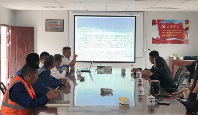 在座谈交流环节中,项目总工程师鲍万宝对项目疫情防控、全面复工复产以及“大干一百天”劳动竞赛活动以来的施工大干举措和成效进行了详细介绍:十七冶始终将项目履约放在首位,在疫情防控的特殊时期,项目部实施一系列抢工期措施,同时开展大干一百天劳动竞赛,倒排工期,层层签订责任状,最大高峰期现场有600余名劳务人员施工作业,三个月施工时间完成了面山改造绿化、起点桥、兰渝铁路桥、主线水稳基层及沥青面层铺筑、机电工程等重要节点。项目部通过诚信履约,以现场促市场,让十七冶路桥品牌得到了业主和社会各界的广泛认可。