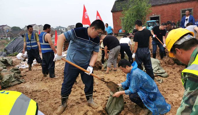 危机中又有危局,整个马鞍山地区的防汛工作千头万绪,市政府给的任务又重,陈远海总监常常顶着大雨奔走多地与各地方沟通联系。在得知“宁博一体化”项目的人员因为连续几日都在雨中干活,已经陆续有人出现感冒发烧的症状,人力出现不足的情况。7月19日,早上7点半,在陈远海总监带头上阵,临时抽调人员组建起一支70人防汛队伍,并出动抢险车辆7辆,携带了铁锹30把,麻袋400只,还有毛巾、纯净水等物资,前往博望丹新河抗洪抢险。