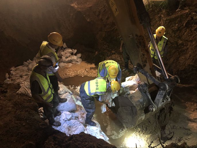 夜晚抢修管涌处