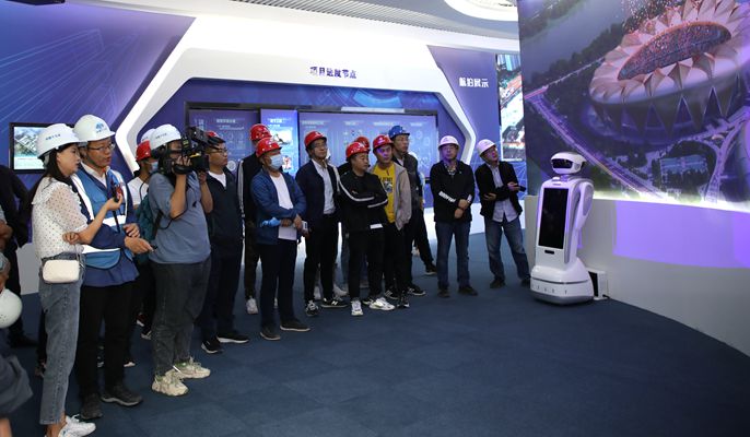 活动中,主持人带领观摩人员和媒体记者走进各个观摩点,参观了奥体科技馆、质量样板区、体育场土建施工区和钢结构制作安装施工区,通过观看讲解、实景参观、座谈交流等环节,集中展现兰州奥体中心项目标准化、智慧化、绿色化施工的诸多特色亮点,突出精益建造、可视建造、智慧建造、集成创新、可视化等管理技术。气势恢宏的大干场景、干净整洁的施工现场、质量观感优良的工程实体以及各种新技术、新装备、新材料、新工艺的应用,让观摩人员和媒体记者们领略到兰奥人的工匠精神。