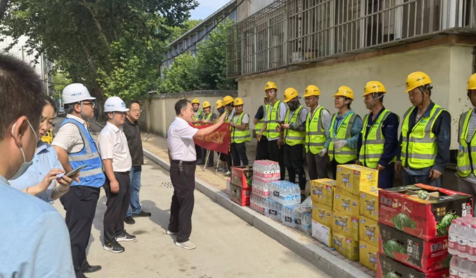 自七月入伏以来,马鞍山持续高温。7月14日上午,马鞍山市住建局局长田雁南来到中国十七冶承建的马鞍山解放路街道老旧小区改造项目送清凉,为项目施工人员带来防暑降温物品,给一线建筑工人送来了实实在在的清凉。花山区住房管理中心殷俊主任,十七冶南京分公司经理吴春义,项目部主要负责人等参加慰问活动。