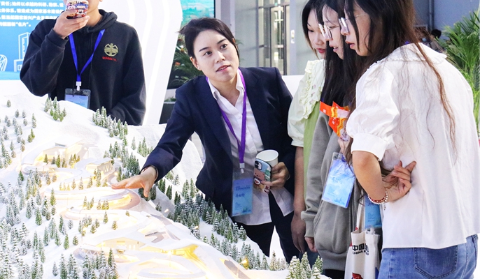 工作人员向观展客人介绍国家雪车雪橇项目