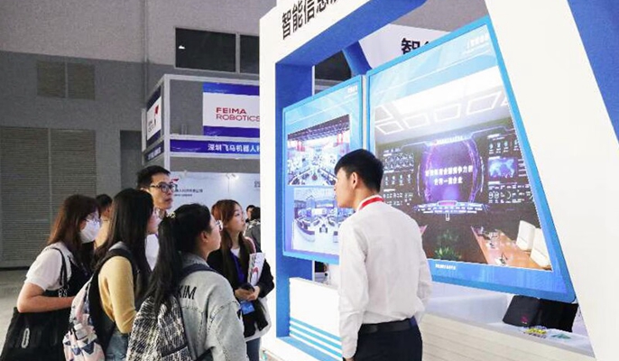 工作人员向观展客人介绍中冶智能信息展区