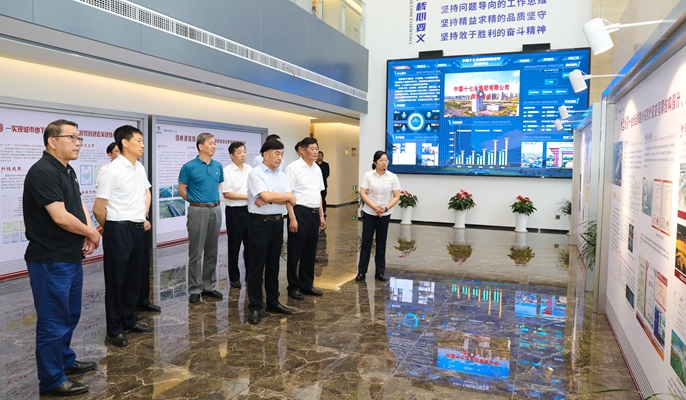 会见期间,丁毅董事长一行实地参观了中国十七冶数字化管控中心、技术中心、技能大师工作室、博士后工作站、企业展厅,深入了解公司数字化转型和科技创新情况。