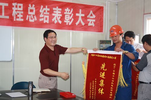 会后,公司经理曹永忠和副经理汪永生向受表彰的先进集体和个人颁发了锦旗和奖状,并对国庆、中秋期间依然坚守在施工一线的广大员工表示节日慰问和祝福。