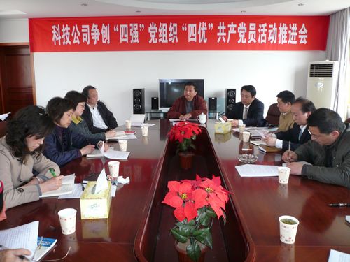 推进会上,工会副主席葛贵生代表科技公司党总支传达学习了十七冶集团公司党委《关于深入开展争创“四强”党组织争做“四优”共产党员活动的实施意见》。党总支结合实际制定开展争创“四强” 、“四优”活动具体实施计划,为每名党员定制了学习记录本,印发了争创“四强”、“四优”目标要求等学习资料和《党员小结讲评表》,从而为深入开展这项活动打下了坚实基础。