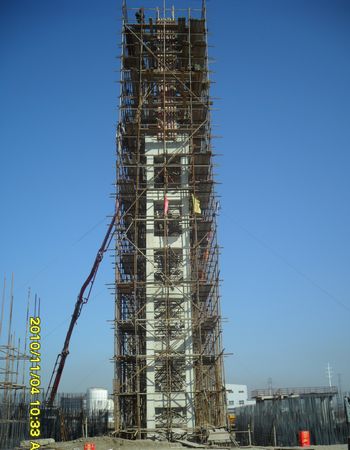 在十七冶集团领导的大力支持以及全体参战员工的共同努力下,营口技改工程干煤棚现浇混凝土柱高质量的顺利竣工。竣工柱顶面标高24.395m(局部标高26.895m),标志着十七冶集团在浇砼独立柱施工技术上的新突破。
