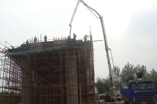 宁淮上跨线匝道桥预应力砼现浇箱梁成功浇筑