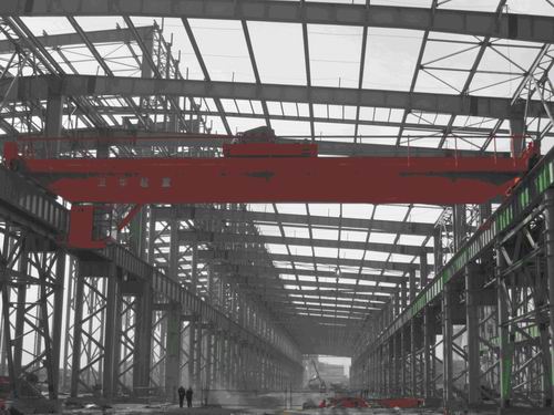 该行车位于冷轧二期主厂房轧机跨北侧,行车轨道跨距27.5m,轨面标高12m,起重量40/5t,设备总吨位63吨。行车设备进场前,项目部精心组织,事先做好吊装前各项准备工作,从设备进场至安装完成仅用了1天时间,得到了业主和监理的高度评价。