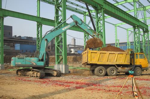611,山东广富集团施工现场鞭炮齐鸣,挖土机轰隆启动,由山东分公司承建的广富集团80万吨棒材土建项目破土动工