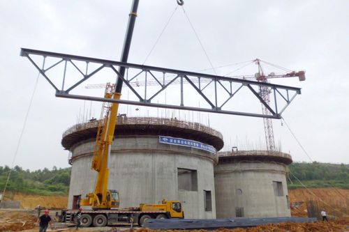 阳春海螺粉磨站水泥库钢梁吊装提前完成
