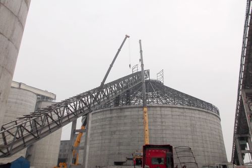 64下午,由十七冶水泥工程技术公司承建的巢东海昌二期一线水泥熟料生产线工程斜拉链钢桁架顺利吊装。