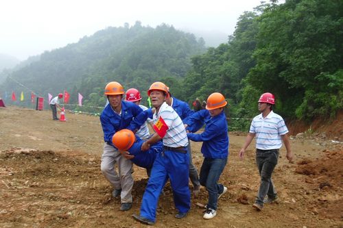 项目部为了提高施工人员的安全防范意识,加强对塌方事故发生应急处置能力,因地制宜地举行了高边坡坍塌事故应急演练。本次演练得到了业主、监理和当地镇卫生院的悉心指导和大力支持,其它参建兄弟单位也到现场观摩。此次演练得到项目建设方、总监办的高度评价,并有效增强了员工的安全意识,提高大家坍塌事故应急能力。