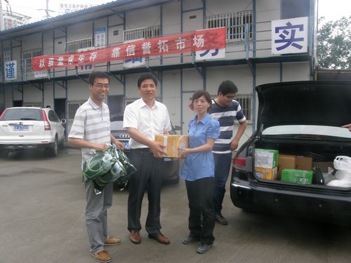 711上午,中国十七冶集团市政工程技术公司党委书记、工会主席周康豹在有关人员的陪同下为在建的六个项目经理部送去了茶叶、绿豆、白糖、仁丹等防暑降温用品。
