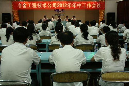 715上午,冶金工程技术公司召开2012年年中工作会议,公司领导班子、经理助理、机关及工程处管理人员共80余人参加了会议,各项目部采用视频形式参加会议。