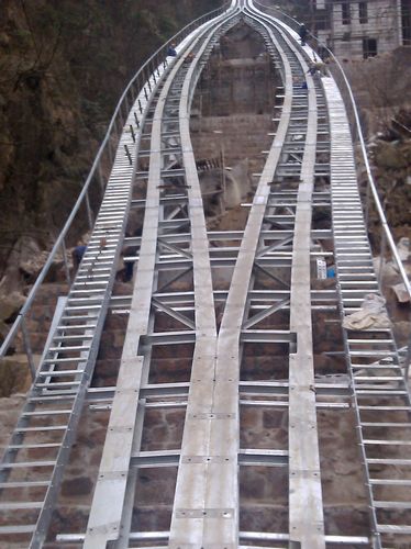 该工程地处西海大峡谷内,山势陡峭,气候多变。步入冬季,缆车线路支架点及施工栈道被寒冰覆盖,钢结构组拼、吊装安全风险系数大。面对困难,项目部精心组织策划,优化施工方案,科学施工管理,连日奋战,在冬季掀起了大干热潮,顺利完成了汇车段的安装及直道段的安装工作,得到了业主及监理的充分肯定。