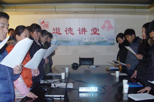 “道德讲堂”是创建安徽省第十届文明单位所赋予的新要求和新内容,旨在进一步提升员工道德素质。从去年四季度开始,该公司按照要求坚持按期开办,并注重日常活动资料的收集和归类,为公司申报第十届省级文明单位积累了完整资料。在“道德讲堂”上,大家齐唱《公民道德歌》,唱出了“人生道路上有德才能行”的美好心声,《好人好梦》唱出了好人终有好梦的美好祝愿;道德故事《闵损芦衣》讲的是珍惜家庭、尊老爱幼、倡导和睦的亲情;“行时时之方便,作种种之功德”等20条《劝善辞》给大家以启发和思考;主持人还带领大家一起向道德讲堂背景上的“德”字鞠躬,行遵德礼。最后,与会人员就每个人在最近的工作、生活中亲身感受或是听说到的与“善心”有关的故事,进行了交流,并谈自身的感悟和体会。