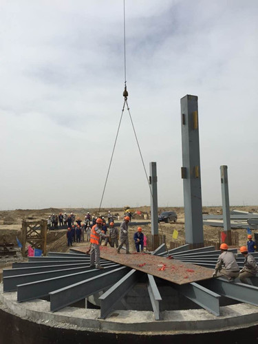 新疆胜沃长焰煤化工工程电石炉炉底板吊装成功