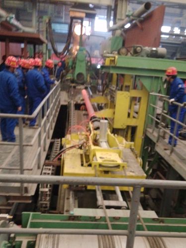 1#离心机设计生产工艺先进,主要生产管径为DN80mm~300mm等不同规格的球墨铸铁管,采用双流槽双工位,使流槽能上下左右调整,铁水落差小,保证铁水平稳流到管模内提高了产品的质量,管模更换升降装置采用液压马达驱动和手动微调,自动化控制程度高。