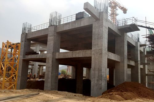 缅甸皎施海螺工程烧成窑尾子项由两层钢筋砼平台组成,标高为+10m,上部承载着130m高的预热器塔架。工程难点在于构件截面尺寸较大,质量控制难度大;预埋铁件、螺栓和预留孔洞精度要求高,因此该工程在技术、质量等方面的要求也更为严格。